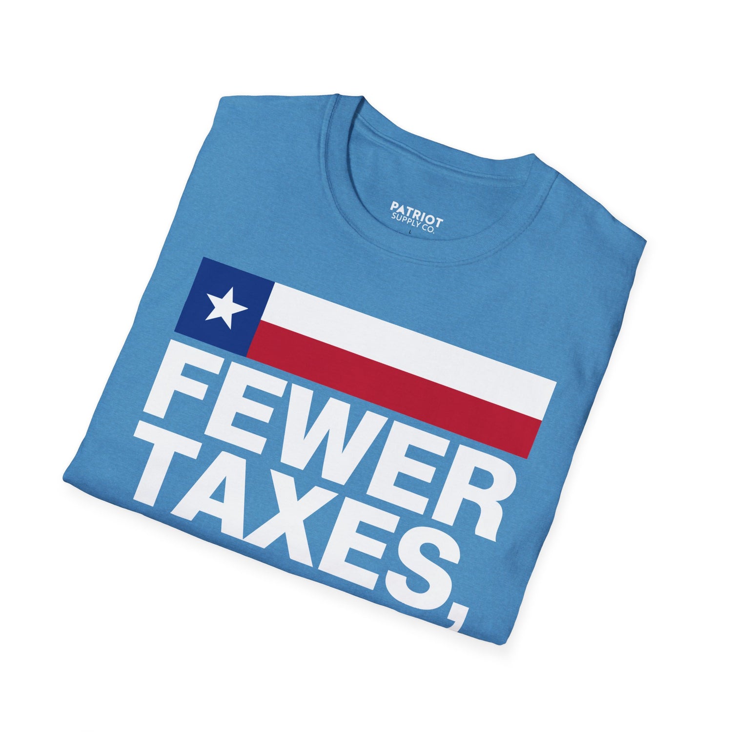 Honor the great state of Texas with our "Fewer Taxes More Texas" cotton tee - the perfect fusion of Lone Star pride and conservative fiscal messaging. This spirited statement tee is designed for proud Texans who understand that their state's success comes from conservative principles like low taxes, limited government, and maximum freedom that make Texas the envy of liberal states drowning in high taxes and failed policies.